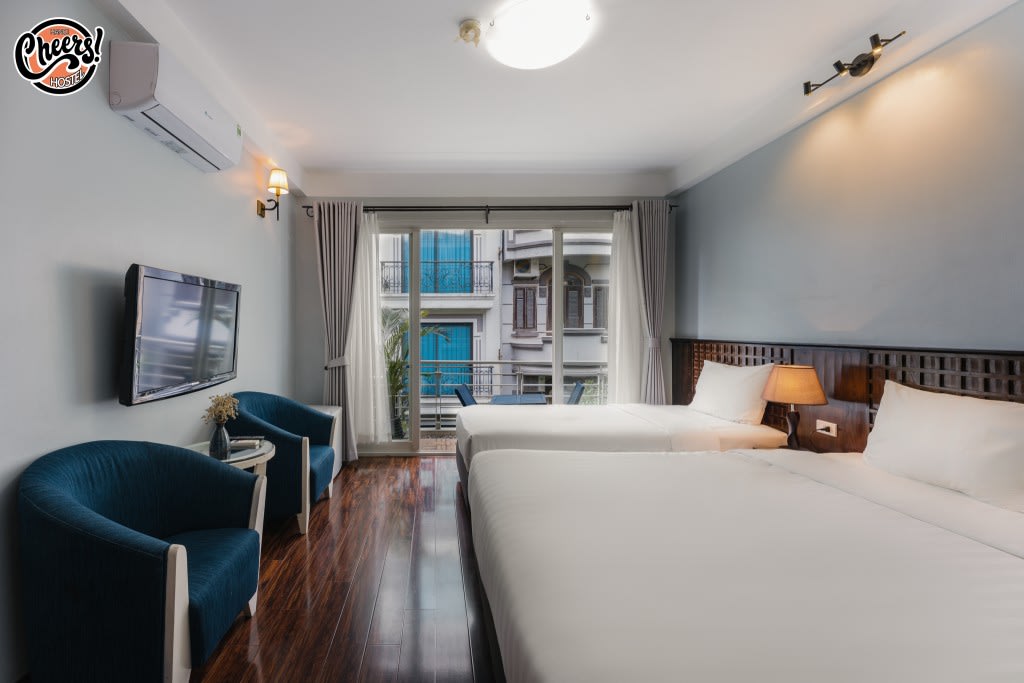 Everyone meet up at Cheers Hostel. Have Free tea, coffee here all day. (No. 05 Au Trieu Street, Hoan Kiem, Hanoi).