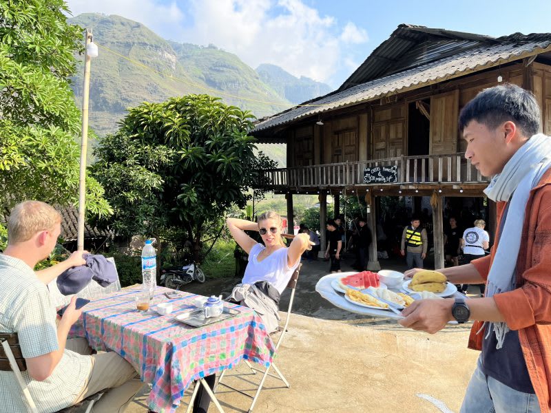 Free a night stay included bed & breakfast at our Hostel in Ha Giang City before your tour begins at 8:45 AM the following day.