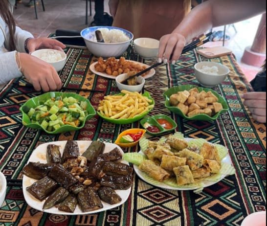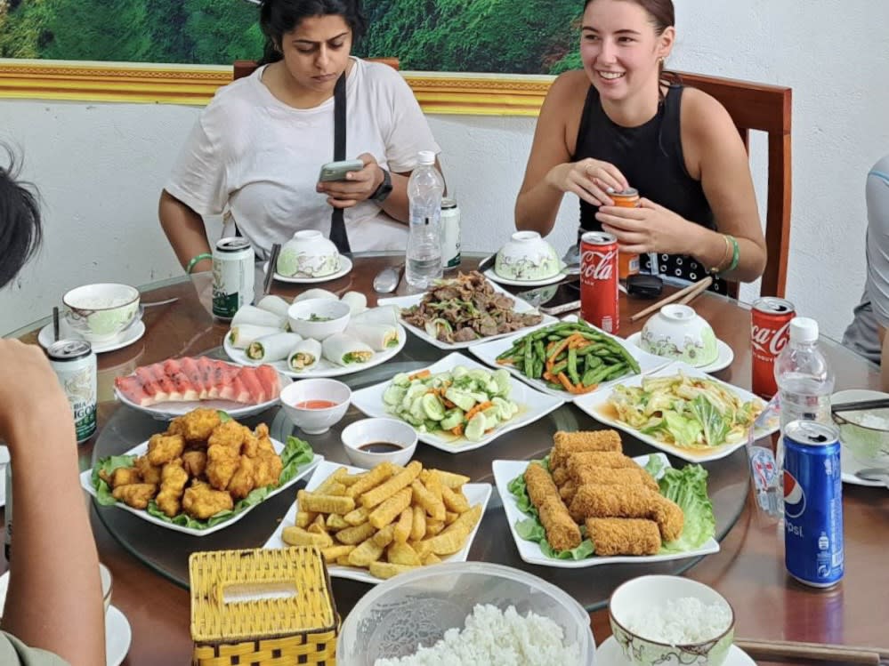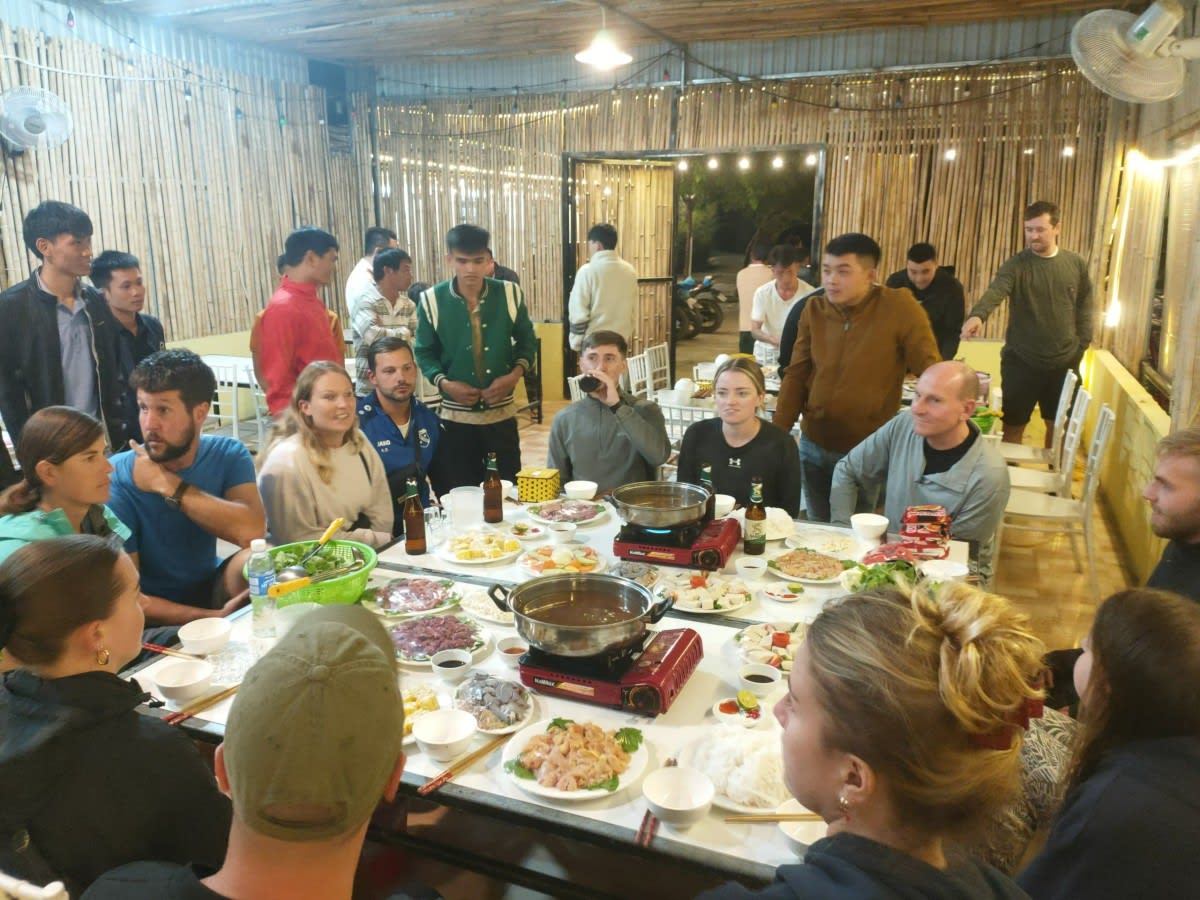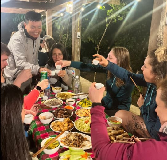 In the afternoon, we pass through the epic mountainous to Du Gia rural homestay. where. located in the middle of green rice fields. Cozy dinner with locals and drink ” Happy Water ” put your hand up and Party, Karaoke and Dancing. 1…2..3 Zooo Cheers… so funnnnn!